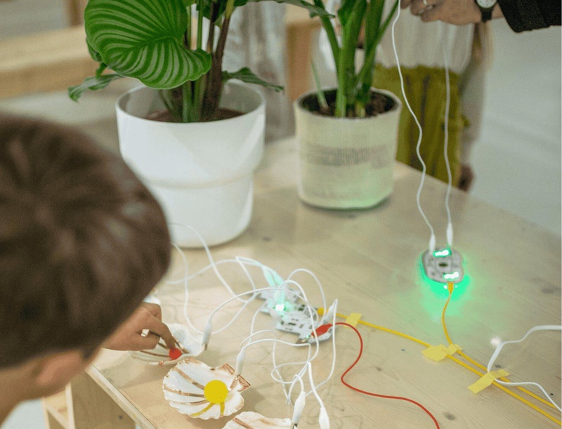 L’atelier se propose de former un orchestre du vivant à travers plusieurs phases de découverte et d’initiation musicale. Pensé comme un voyage sonore, le chemin débute par une phase d’écoute musicale et sa gestuelle faisant écho à nos représentations de la nature. La particularité de l’atelier réside dans l’hybridation des instruments proposés aux participants, mêlant synthèse du vivant et technologie. L’issue de cette activité est une performance musicale de leur propre création, avec pour seule consigne de copier le vivant en collaborant musicalement ensemble.